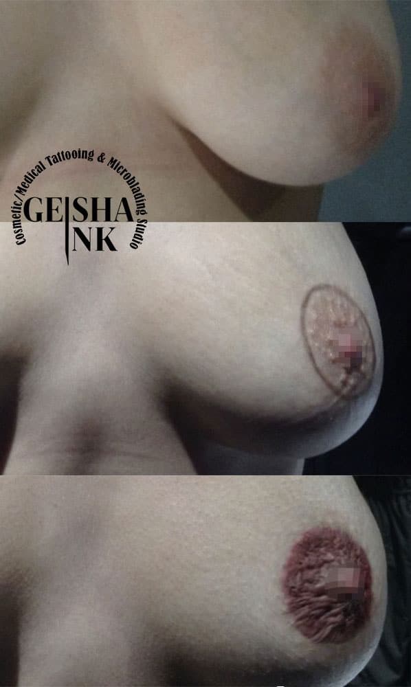 Areola reconstruction alters the appearance of the areola, changing the shape or color or giving people a nipple if they do not have one. It is done the same way other cosmetic tattoos are, pigment is deposited into the skin to create an image. Areola tattooing can be an advantage to a lot of people both aesthetically and psychologically. It helps breast cancer survivors, those who have burns or scarring on their chest/breast area, trans and non-binary clients and anyone who is not happy with the way their areola looks.