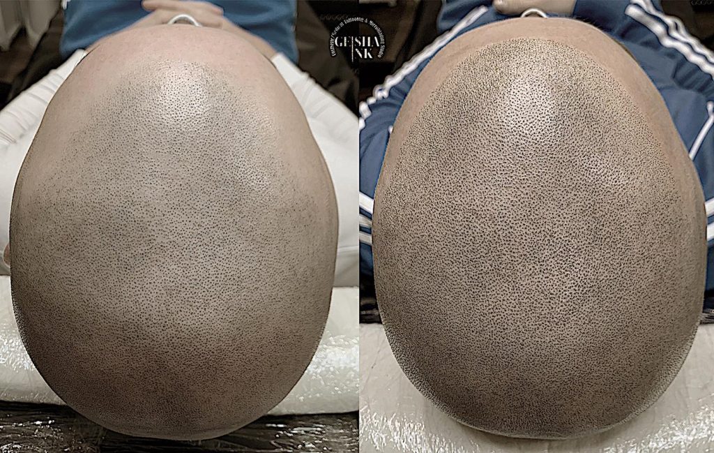 Scalp micropigmentation is the world’s leading hair loss solution. With a cosmetic machine pigment is implanted into to scalp to replicate the look of hair follicles. It can give you the look of a full head of shaved hair, it can camouflage small patched areas of hair loss or scalp micropigmentation can reduce the contrast between scalp and skin for those with thinning hair. It may take a few sessions before you get the exact look you’re hoping for but the results are guaranteed and life changing. Touch ups will be needed between 3 to 5 years.